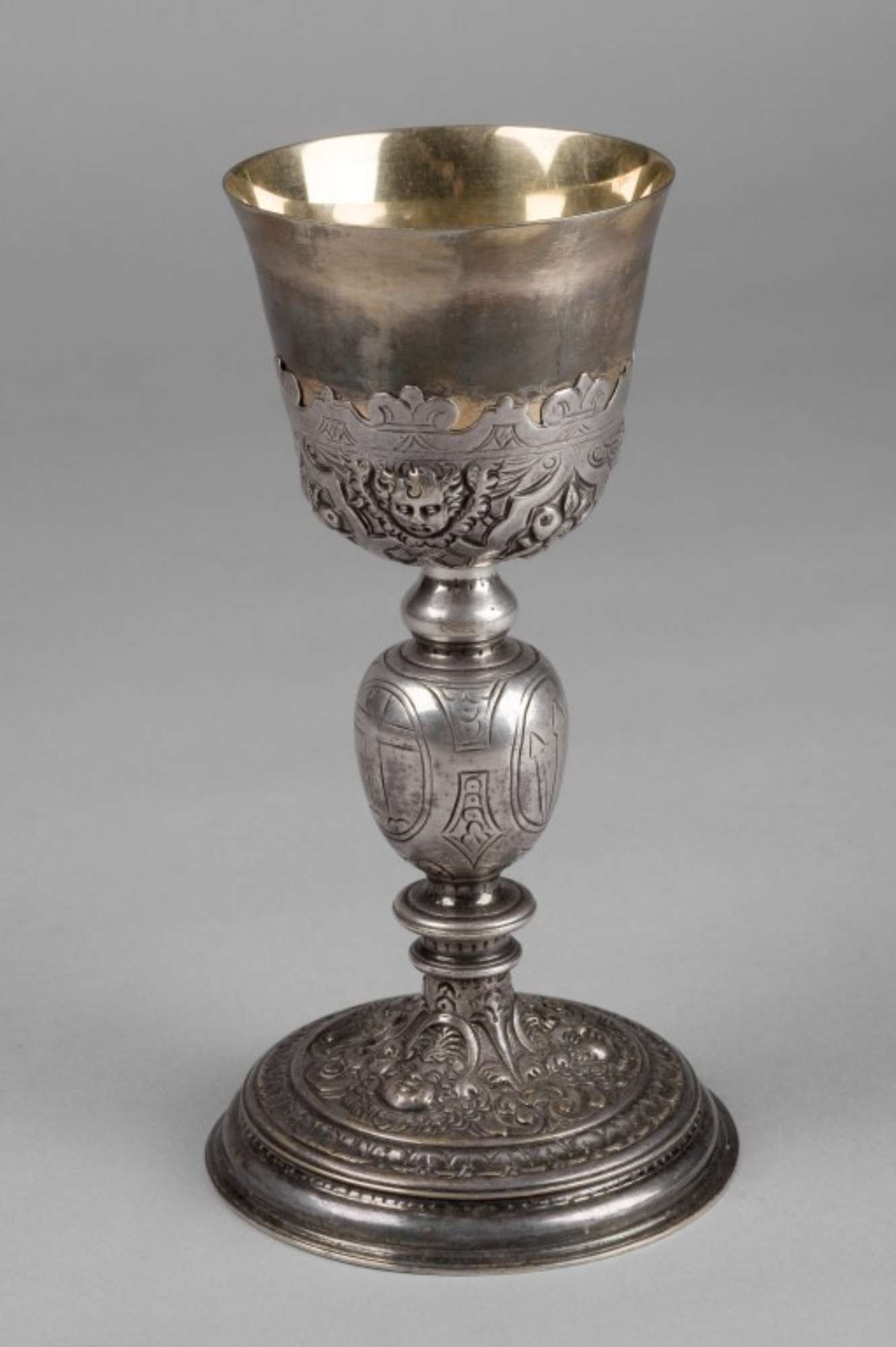 Il calice è di argento sbalzato e inciso, con parti a fusione. La sottocoppa e la base sono ornate con motivi vegetali e con cherubini. Il nodo è voluminoso e reca incisi i simboli della 'Passione'.