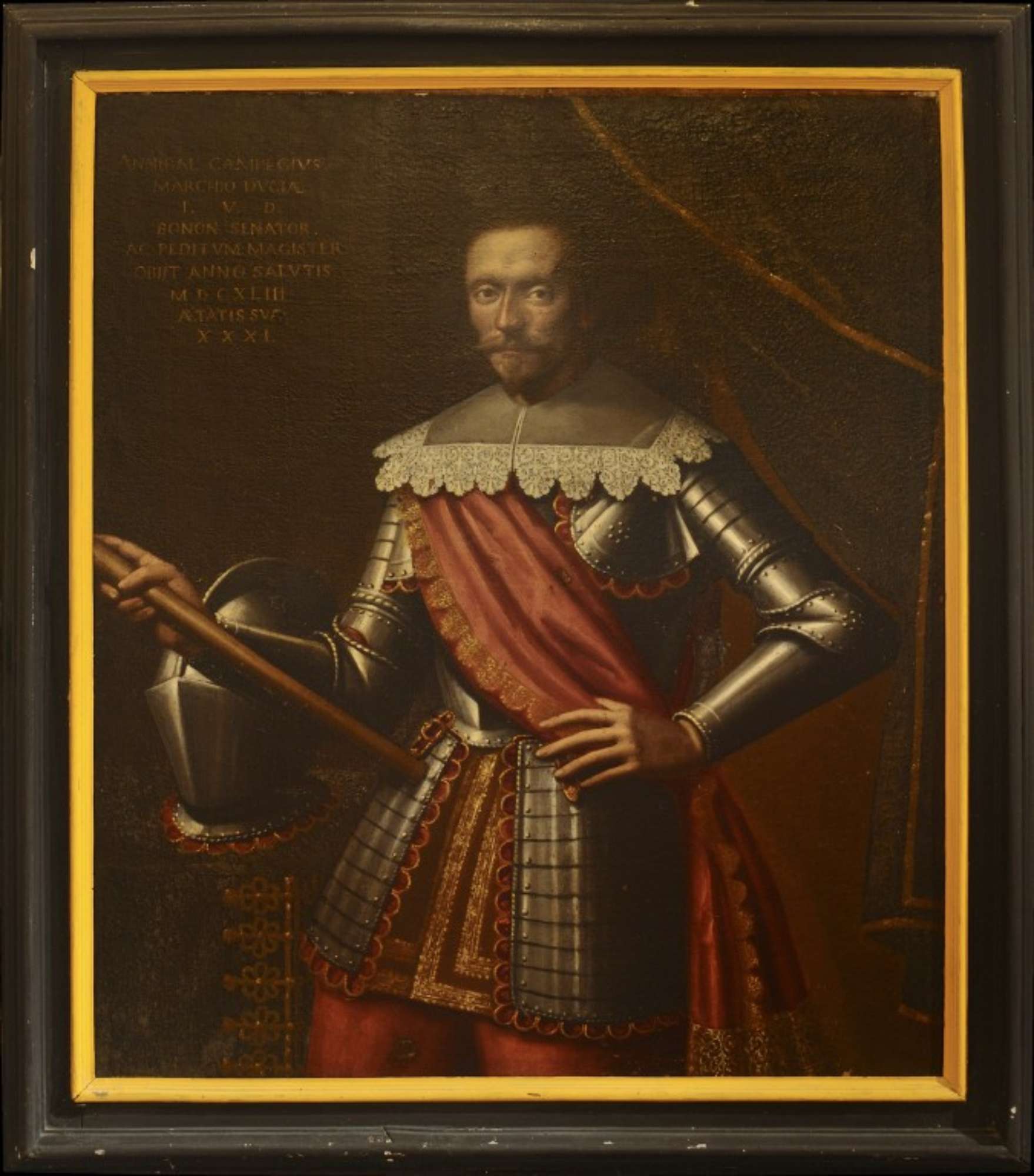 Il dipinto a olio su tela ritrae Annibale Campeggi vestito con l'armatura.