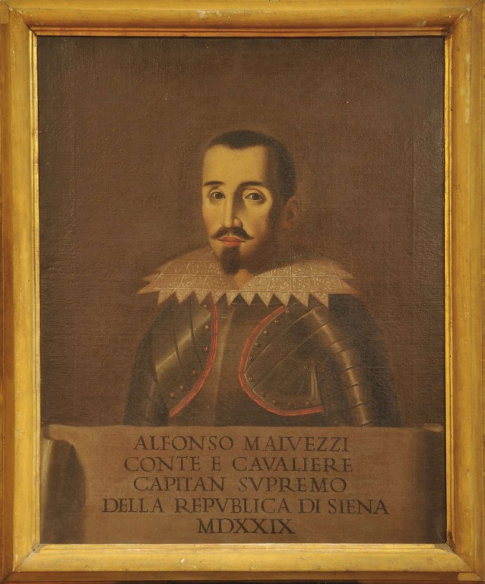 Il dipinto a olio su tela raffigura Alfonso Malvezzi vestito con l'armatura.