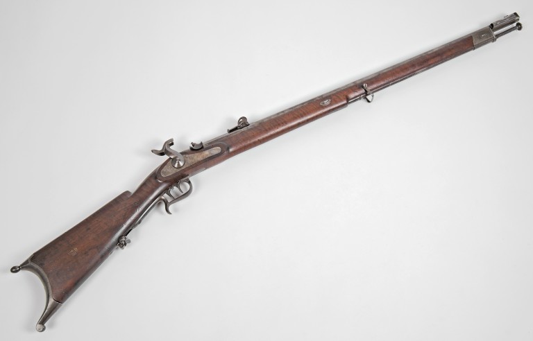 Carabina federale svizzera, modello 1851, in dotazione ai reparti di cacciatori. Adottata anche dal Battaglione cacciatori svizzeri dell'Esercito Borbonico, dai Carabinieri genovesi (spedizione dei Mille), dai Carabinieri Milanesi (campagna del 1866), arruolati volontari fra i soci del Tiro a Segno Nazionale delle città lombarde. L'arma era adottata pure dai vari tiri a segno come arma lunga standard. E' stata rinvenuta carica; si è tolta la polvere ed è stata lasciata in sito la pallottola di piombo. (Gianpaolo Reggiani)