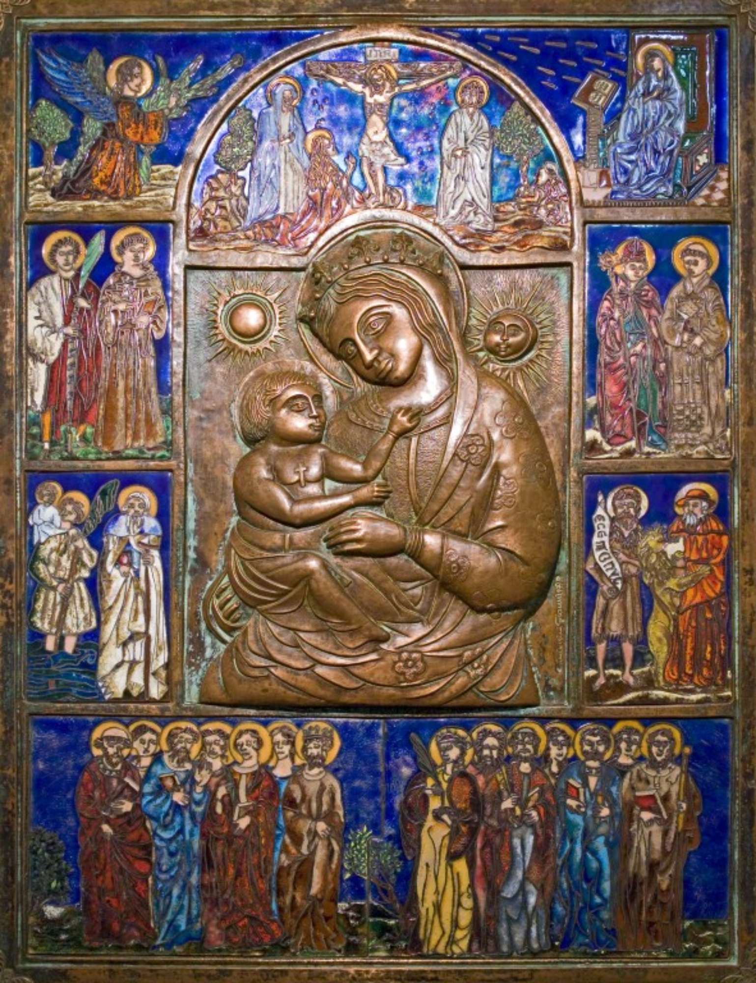 Madonna del Fuoco in rame sbalzato, cesellato e smalti.