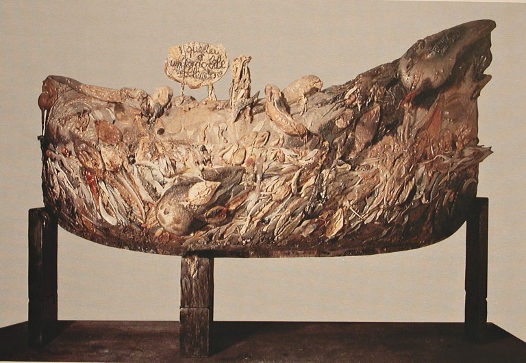 Grande struttura a vela, sul fronte convessa e sul retro concava, teatro di assemblaggi polimaterici, calderone di rifiuti putrescenti, ospitante il busto dell'artista che presiede al ruolo di chimico e demiurgo.