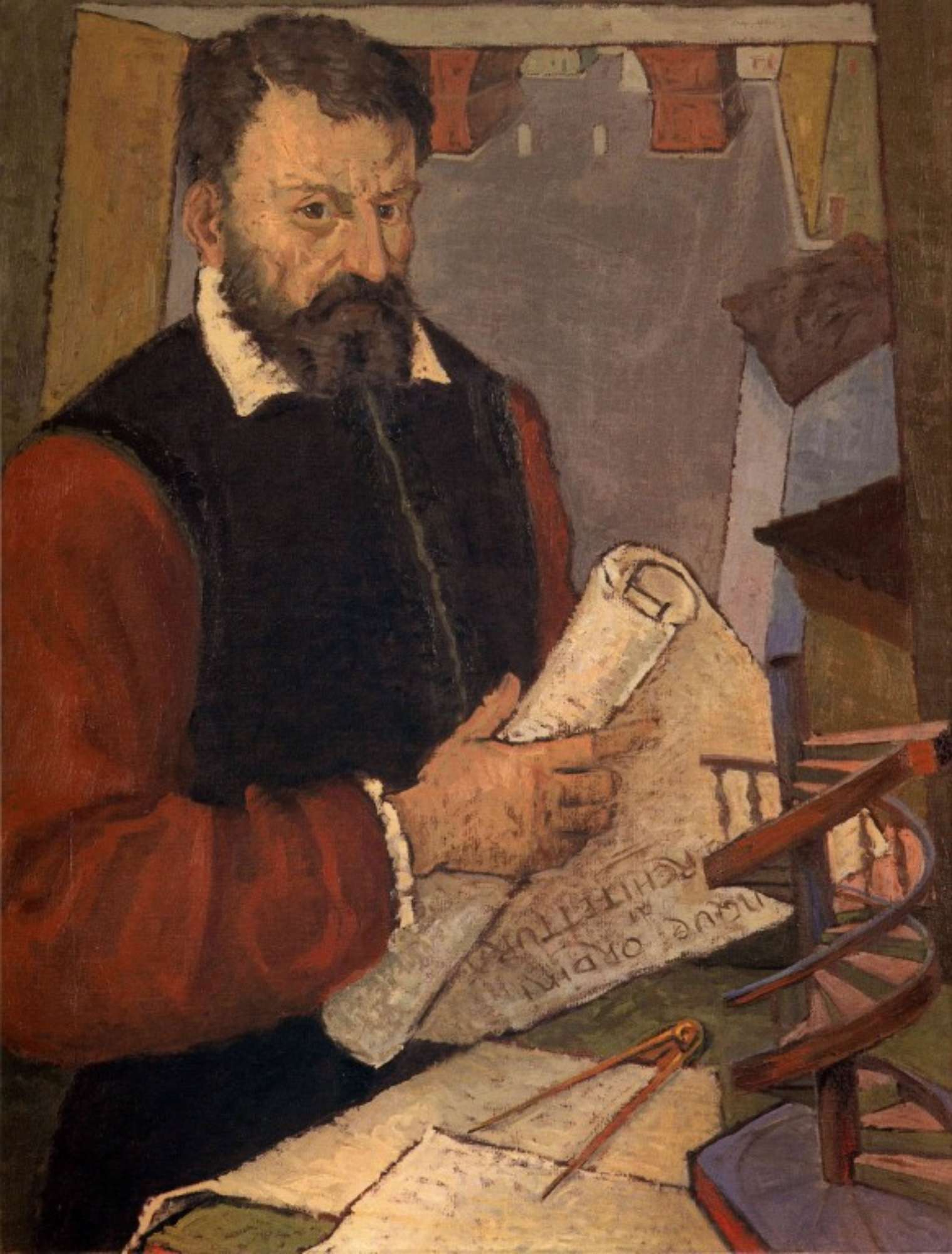 Il dipinto fu eseguito in occasione del concorso per la qualificazione estetica del nuovo istituto commerciale "J. Barozzi" di Modena, di proprietà della Provincia, nel 1958, secondo la "legge del 2%", legge n. 717 del 20-7-949. E' un ritratto ideale del noto architetto e trattatista, in cui Annovi esprime la sua personale sintassi costruttiva, con la tipica veduta urbana destabilizzata e soggettivamente ricreata.