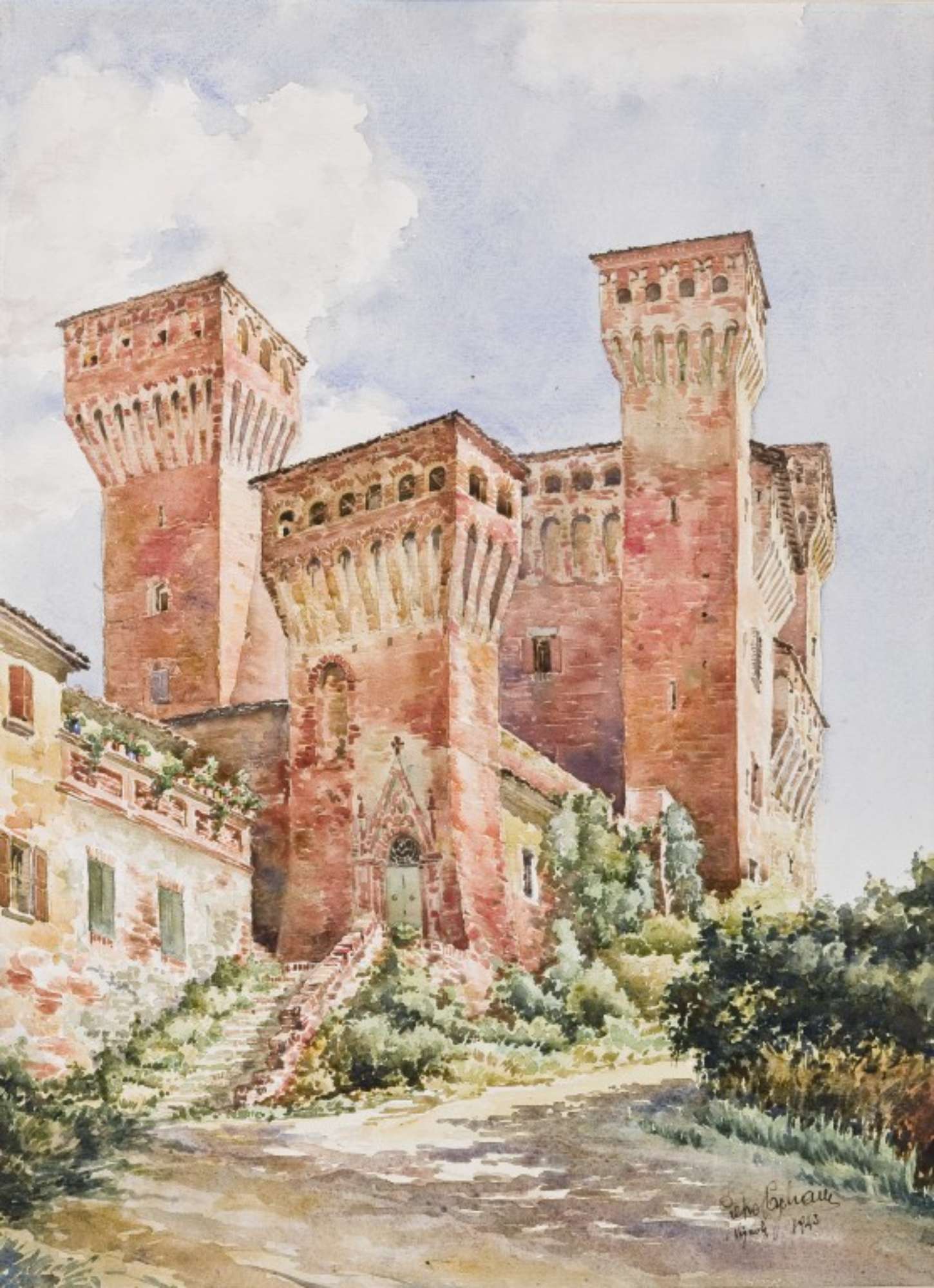 Opera nella scia del vedutismo di Arcangelo Salvarani, già maestro di Pagliani presso l'Istituto d'Arte di Modena, appartiene a una serie di 15 acquerelli che illustrano i principali monumenti modenesi e della provincia, provenienti dall'ex Azienda di Promozione Turistica di Modena, già Ente Provinciale del Turismo (vedasi anche scheda inv. 7220). Di questo dipinto si rileva l'interesse di testimonianza storica, in quanto documenta un assetto del luogo anteriore ai più recenti interventi conservativi.