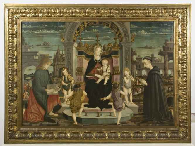 L’opera è stata depositata in Pinacoteca dalla Banca del Monte di Faenza. La critica si è trovata concorde nell’attribuire il dipinto al maestro della Pala Bertoni, pittore inizialmente identificato con il faentino Leonardo Scaletti e in seguito con Giovanni da Oriolo, ma la questione, alquanto complessa, è ancora irrisolta.