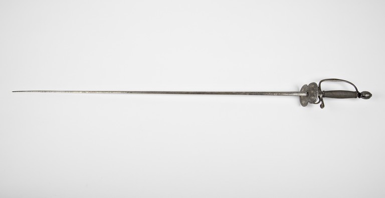 Spadino composito. Fornimento in bronzo argentato. Pomo sferoide su basetta bottonato. Impugnatura lignea affusolata. Doppia valva.