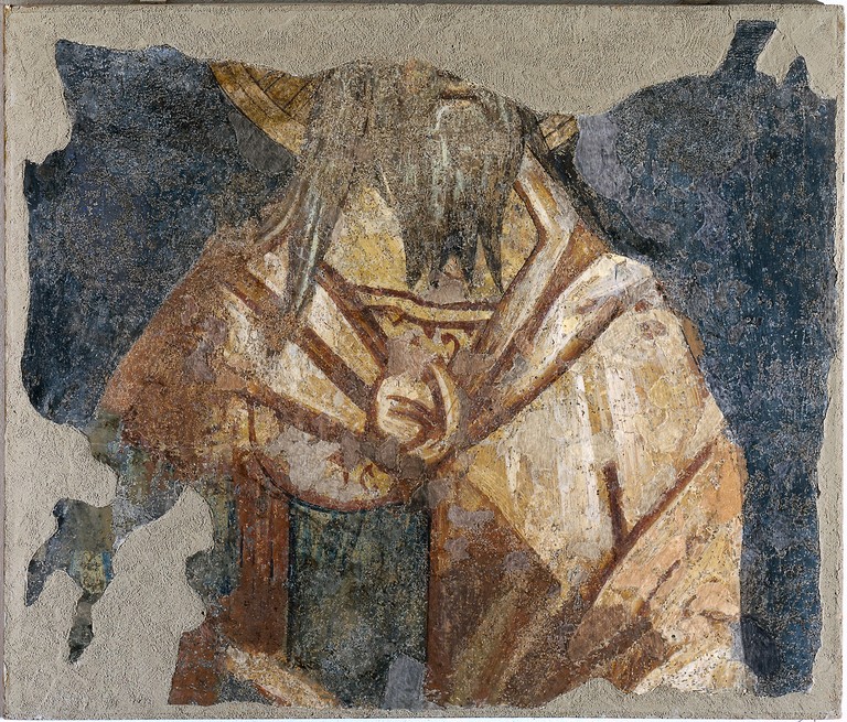 Da quanto si desume esaminando la documentazione conservata in Museo, il consolidamento della superficie pittorica fu effettuato solo nel 1966 (restauro di Ottemi Della Rotta), per poi essere ripetuto una decina di anni più tardi (ad opera di Silvestro Castellani), quando si rese necessaria anche la sostituzione dei telai; in questa occasione furono parzialmente asportate le estese ridipinture eseguite da Grandi all’inizio del secolo, come dimostrano alcune fotografie antecedenti il restauro (tutta la documentazione riguardante l’intervento è conservata presso l’archivio del Museo). Non ci sono pervenuti risultati di analisi relative ai materiali e alla tecnica di esecuzione dei dipinti, per cui è difficile, allo stato attuale, dire se essi furono realizzati ad affresco o se, come accade di frequente nella pittura murale del Duecento, i pigmenti siano stati applicati in parte a secco. I due Profeti, che appaiono oggi gravemente mutilati e che in origine, con tutta probabilità, erano raffigurati stanti, ornavano verosimilmente l’arco trionfale del Duomo (o comunque una zona immediatamente adiacente: Bosi, in Il Duomo… 1999, p. 444). Nella porzione di arco compresa tra le volte quattrocentesche e il tetto sono, infatti, ancora visibili tre mezze figure di santi molto danneggiate (di cui non esistono fotografie), che possono essere avvicinate a quelle conservate in Museo (AUTENRIETH 1984, p. 246). Queste pitture (quelle dei sottotetti e quelle del Museo) sono da mettere in relazione con diversi brani figurativi rinvenuti nell’abside maggiore nel corso di successive campagne di restauro, come un frammento di figura in trono proveniente dalla zona inferiore della parete (oggi presso la scala dell’Archivio Capitolare: Bosi, in Il Duomo 1999, p. 413) e taluni lacerti di non facile lettura distrutti alla fine dell’Ottocento, di cui possediamo alcune testimonianze fotografiche (ACIDINI LUCHINAT, SERCHIA, PICONI 1984, pp. 74-82; SARCHI 1998, pp. 175-176; Rivi, in Il Duomo… 1999, pp. 314-315): si tratta dei Dottori della Chiesa dipinti nella strombatura della finestra mediana, di due volti nimbati emersi alle estremità della conca e di ventiquattro riquadri con tracce di figure di santi rinvenuti nell’intradosso dell’arcone (per le immagini relative, parzialmente riprodotte in Il Duomo di Modena 1999, cfr. Album fotografico dei ristauri interni 1886-18…, ACDMo, pp. 7-10, 12-14).