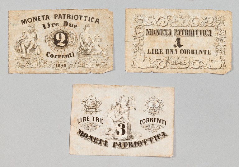 Cartamoneta patriottica da Lire 1, 2, 3.