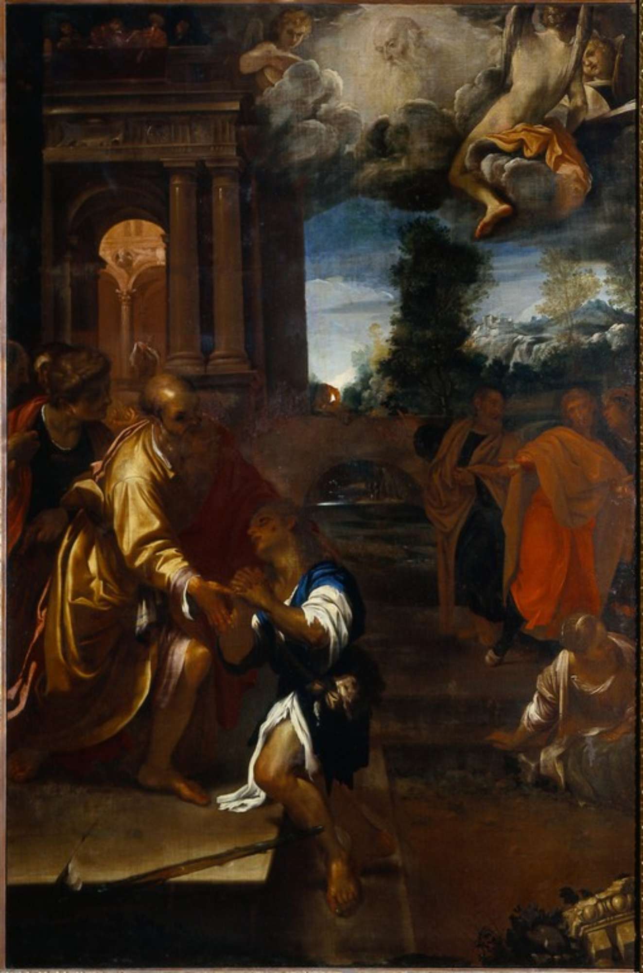 Si tratta di un’importante testimonianza relativa a un famoso dipinto che Annibale Carracci eseguì attorno al 1590 per la cappella Zambeccari nella chiesa del Corpus Domini a Bologna, poi nella collezione del duca d’Orléans e al momento perduto (un’altra copia, segnalata in BROGI 1996, è nel Museo d’arte industriale Davia-Bargellini e un’altra ancora, di ridotte dimensioni, appartiene a una collezione privata bolognese). Del quadro di Annibale, che la letteratura recente insiste nel riferire erroneamente ad Agostino, rimangono altresì alcuni disegni preparatori a Windsor Castle (WITTKOWER 1952, p. 112, nn. 95, 96), agli Uffizi (POSNER 1971, II, pp. 161-162, fig. 54), al Louvre (LEGRAND in Le dessin… 1994, p. 54 n. 33), a Brema e a Stoccarda (BROGI 1996, pp. 118-119, figg. 233-234). Sono poi note derivazioni grafiche di epoca successiva e un’incisione tratta dal dipinto allorché si trovava nella galleria del duca d’Orléans, dalla quale si evince che la copia qui considerata, pervenuta al Museo in condizioni assai precarie, è stata ridotta su entrambi i lati. Proprio a causa del cattivo stato di conservazione il dipinto, destinato da Giuseppe Campori alla Reale Pinacoteca di Modena a patto che venisse esposto, venne acquisito dal Museo Civico un anno prima che il marchese perfezionasse il lascito della sua intera quadreria. Recava una scritta “Miradois”, ora non più leggibile, che aveva fatto pensare in un primo momento a Luigi Miradori detto il Genovesino (“Il Cittadino”, 1887). In seguito Gabriella Guandalini (in Mostra di opere … 1980) ne ha proposto un’attribuzione a Francesco Stringa, che è apparsa per lungo tempo impeccabile: non solo l’attività di copista del pittore modenese è ben documentata, legandosi ai compiti istituzionali derivanti dalla carica di Soprintendente alla Galleria Estense da lui ricoperta a partire dal 1661, ma la restituzione dell’accalorata tavolozza carraccesca attraverso una stesura che enfatizza i contrasti luminosi sembrava ben confacente allo stile dello Stringa, come appare nelle tele dell’abside della chiesa del Voto (1665-1670) e nell’Assunta della chiesa di San Carlo (1675). La ricostruzione della vicenda inventariale del quadro effettuata nella presente occasione impone invece di revocare quanto meno in dubbio tale ascrizione e di prospettare una diversa e più aderente soluzione. Risulta infatti inevitabile identificare il quadro nella “Copia del quadro famoso del Figlio Prodigo di Annibale Caracci, fatta per quanto pare da Domenico Maria Canuti”, citata al n. 91 nella Divisione della seconda metà delle pitture passate a Carlo Campori in seguito alla morte della madre Ginevra Legnani morta nel crollo del palazzo (1801). In seguito lo stesso dipinto ritorna, ma senza più indicazione d’autore, nell’inventario e stima dei quadri del 1857 (“Ancona pel lungo figurante il Ritorno del figliuol prodigo, quadro originale ben conservato con cornice intagliata e dorata”). Poichè è ben noto il ruolo tenuto da Domenico Maria Canuti nel revival carraccesco che interessa la pittura bolognese di fine Seicento, il riferimento contenuto nell’inventano del 1694, a soli dieci anni dalla sua morte, appare tutt’altro che sottovalutabile. Pur nella necessità di aderire al prototipo, il dipinto mostra in effetti quel ricorso ad abbreviature formali che denotano il gusto sapientemente barocco di Canuti, inducendo ad esempio al confronto con opere come l’Angelo custode tuttora nel Duomo di Mantova o il Miracolo dell’ostia consacrata ora in palazzo Pepoli Campogrande (STAGNI 1988, nn. 23, 33), confrontabili con il presente dipinto anche per la gamma cromatica scura e luministicamente ribassata.