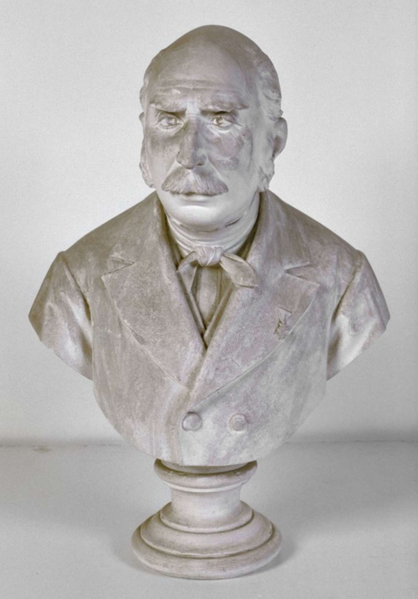 Il busto rappresenta un uomo quasi calvo, con lunghe basette e baffi, la sciarpa allacciata al collo con un bel nodo e la giacca abbottonata.