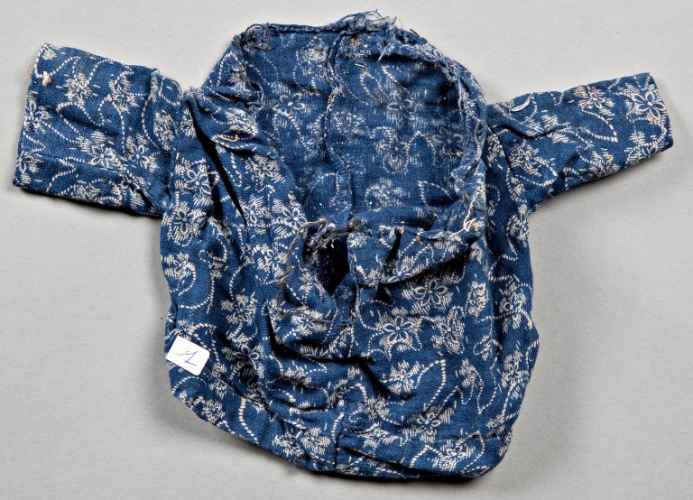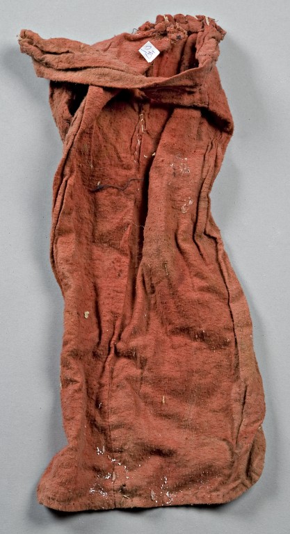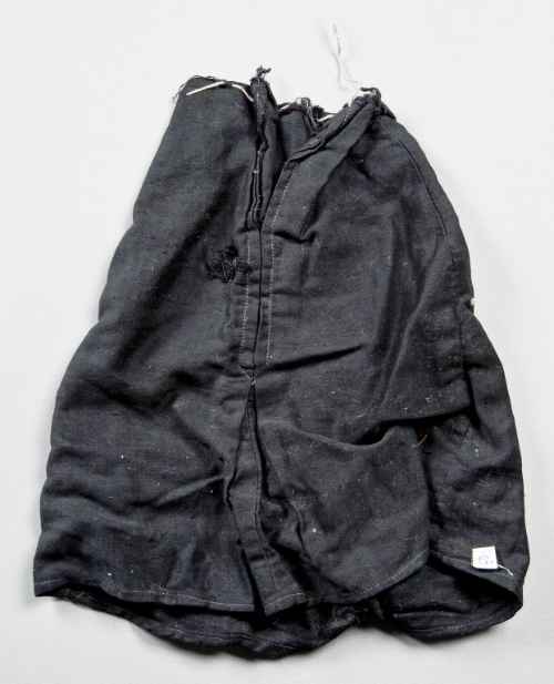 Il camiciotto è vestito col tipico abito nero della 'Morte' (è adottata la classica soluzione delle ossa di cotone bianco cucite sull'abito). La tela verde è un tessuto militare, quasi certamente della Seconda Guerra Mondiale, su cui è annotato il nome di una persona di nazionalità tedesca: Johanni Buchmeier (probabilmente un soldato). L'abito della morte è databile al 1960 circa.
