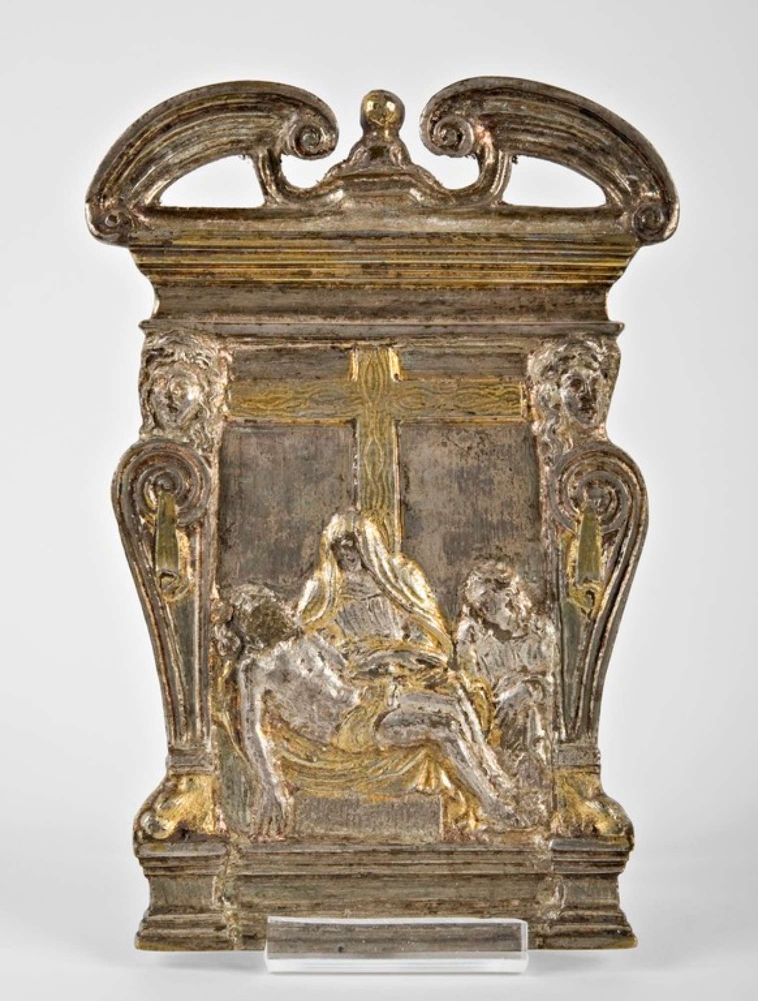 La pace esposta in una teca nella sala del Seicento è caratterizzata dalla raffigurazione della deposizione dalla croce di Gesù.