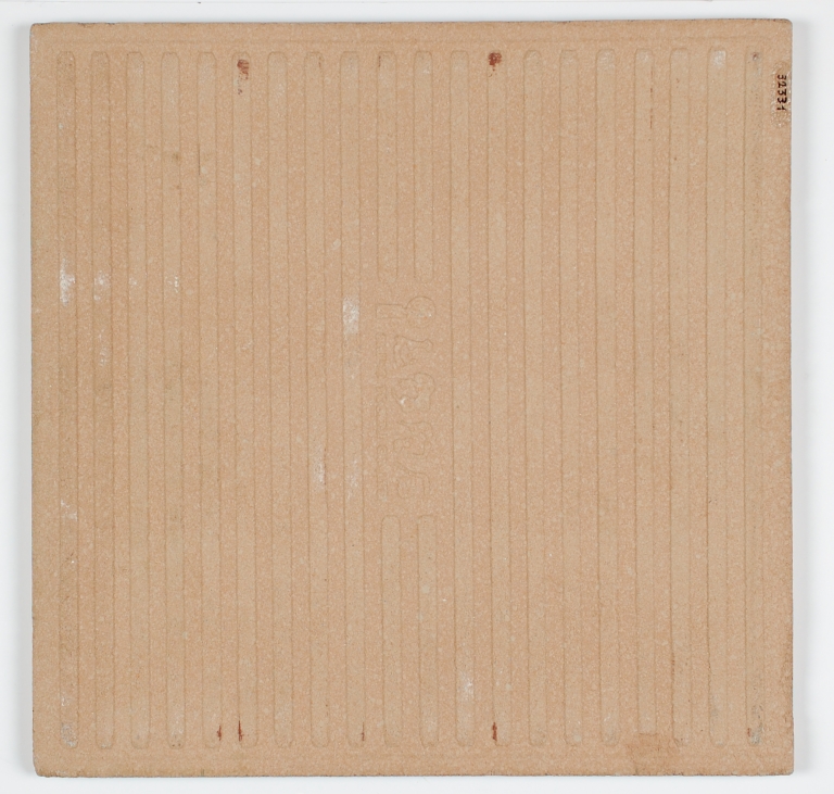 Piastrella della serie "Artist Series" in grès colorato gelivo con decorazione in rilievo (ottenuta mediante riproduzione di una immagine fotografica con stampo in plastica), rivestita di smalto grigio.