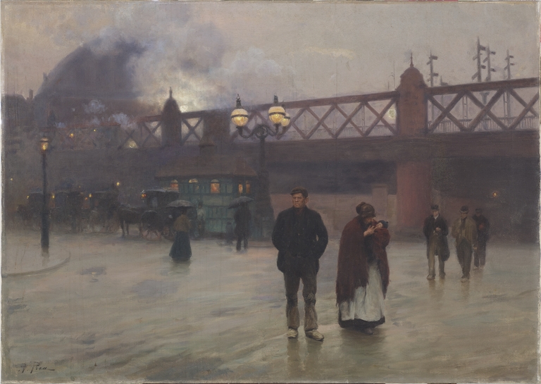 Per la realizzazione di questo brano londinese l’autore s’ispirò alle raffigurazioni urbane degli impressionisti, risalenti a qualche decennio prima. Pur collocandosi in una fase di transizione, che certamente in altri pittori aveva già seminato i sentori di novità linguistiche prossime a venire, l'opera evidenzia uno stile un po' convenzionale. La suggestiva rappresentazione di Charing Cross è influenzata quindi dal modello romantico, in particolare dal pittore tardo-vittoriano John Atkinson Grimashaw (Toffanello in Da Boldini a De Pisis, p. 57), ma reinterpretato da Pisa in modo personale e rarefatto, tutt'altro che compiacente al pittoresco per cercare un facile riscontro di pubblico. Dopo l'esposizione alla Biennale di Venezia del 1901 e alla mostra provinciale di Belle Arti a Ferrara, quattro anni dopo, un gruppo di cittadini ferraresi acquistarono la tela per donarla alla Pinacoteca civica.
