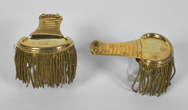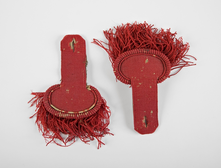Coppia di spalline rosse in lana con frangia, da truppa della Guardia Nazionale.