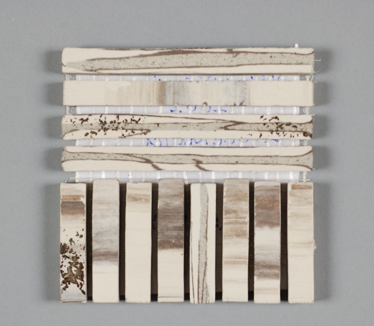 "Terremix" dodici elementi a mosaico con "litoceramica", un impasto di grès porcellanato marmorizzato cuocente a 1200° C, montati su una griglia.