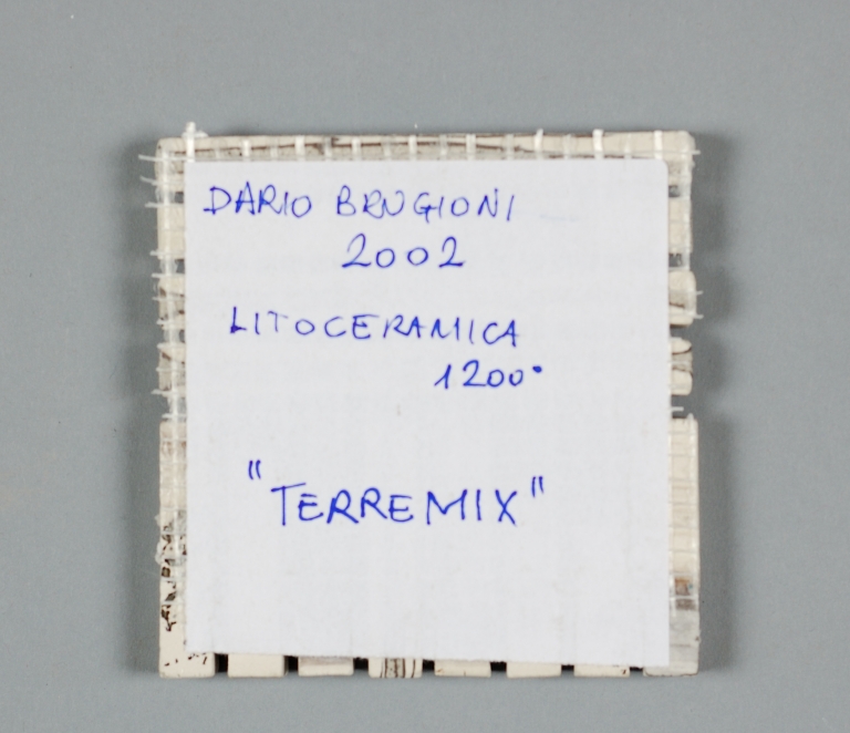 Nel retro è presente la scritta "DARIO BRUGIONI/ 2002/ LITOCERAMICA/ 1200°/ "TERREMIX".