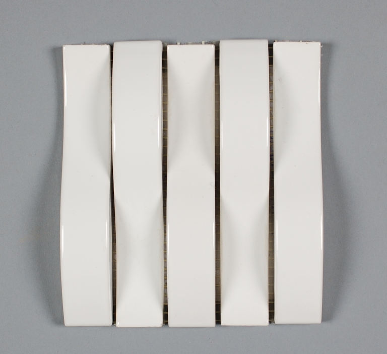 "Pianoforte" cinque moduli in altorilievo in terraglia smaltata con "Bianco Sassuolo", montati su una griglia.