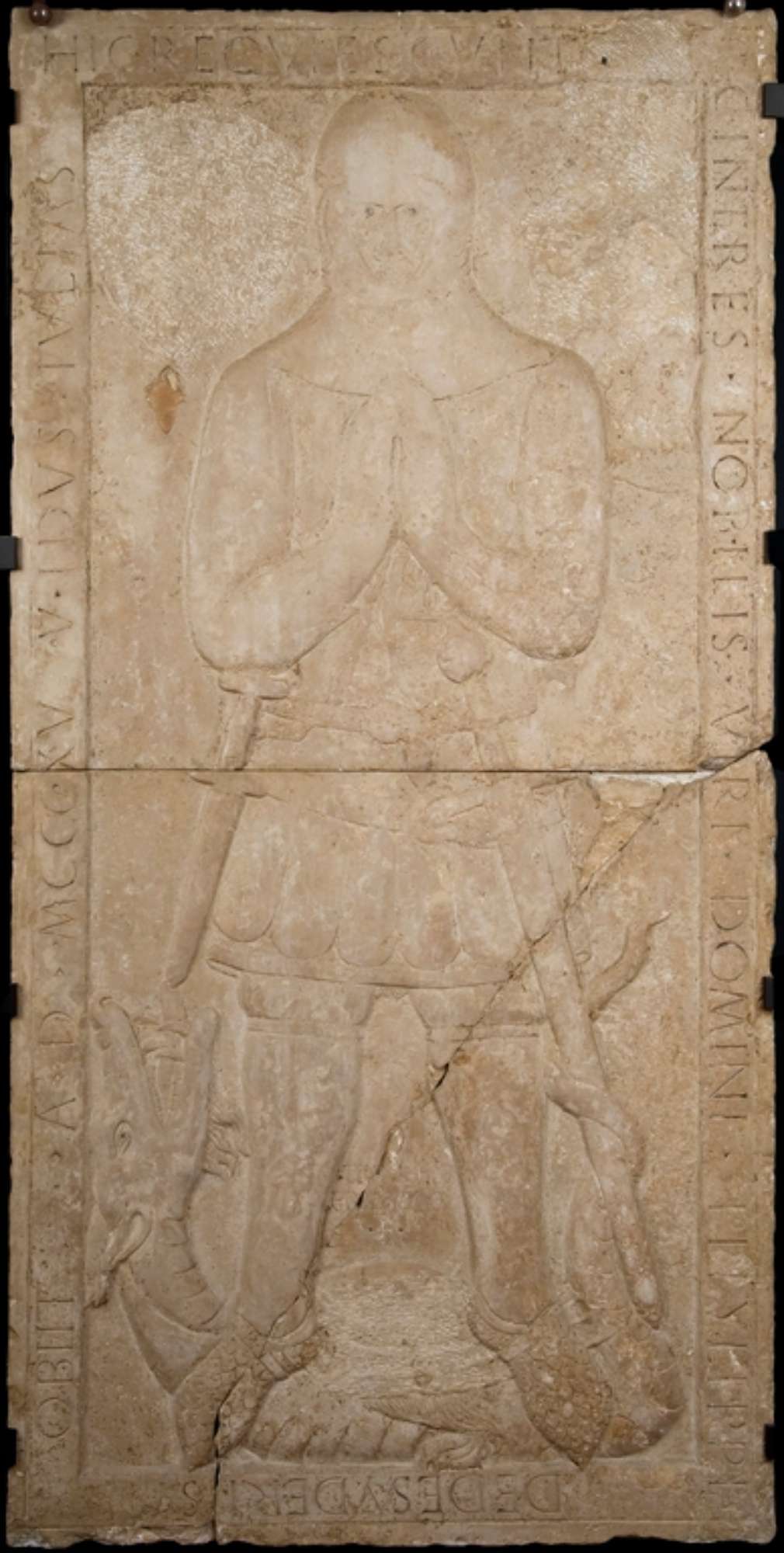 Sulla vita del cavaliere Filippo de' Desideri, morto secondo l'epigrafe l'11 luglio 1315, poco sappiamo. Ancora meno sappiamo della cultura artistica dell'autore, Arriguzzo Trevisano, che firmò la lastra nel 1315, anche perché allo stato degli studi risulta difficile elaborare un profilo della scultura trevigiana all'inizio del XIV secolo. Lo stesso discorso vale per certi versi anche per l'universo bolognese, se si eccettuano alcuni esempi nel primo quarto del Trecento, dove risulta però particolarmente difficile tracciare delle linee guide. Mantiene ancora una chiara validità l'interpretazione di Grandi che tendeva a "pensare la Padania del primo Trecento liberamente percorsa da lapicidi di varia formazione ed ibrida aggregazione, intrecciata e unitaria, specie negli esiti marginali o episodici, più di quanto suggeriscano le distinzioni regionali fino ad ora prevalenti." (Grandi 1982) Sottolineandone gli aspetti stilistici, orientati verso un realismo vibrante dal forte accento impressionistico, ricco di una forza vitalistica, ma caratterizzato da una condotta sommaria, schietta e da un modellato a tratti grossolano. Nonostante le condizioni lacunose della lastra, e la fissità sottile dello sguardo degli occhi piombati, possiamo solo immaginare l'acido naturalismo originario espresso nel severo volto di Filippo con le rigide gote incastrate nell'elmo all'italiana; é infatti logico che la complessità visiva del monumento, integrato dagli stemmi ,dagli speroni e dalle cromie, ridava un'immagine ben più credibile, di chiara marca analitica. (P. Cova 2007)