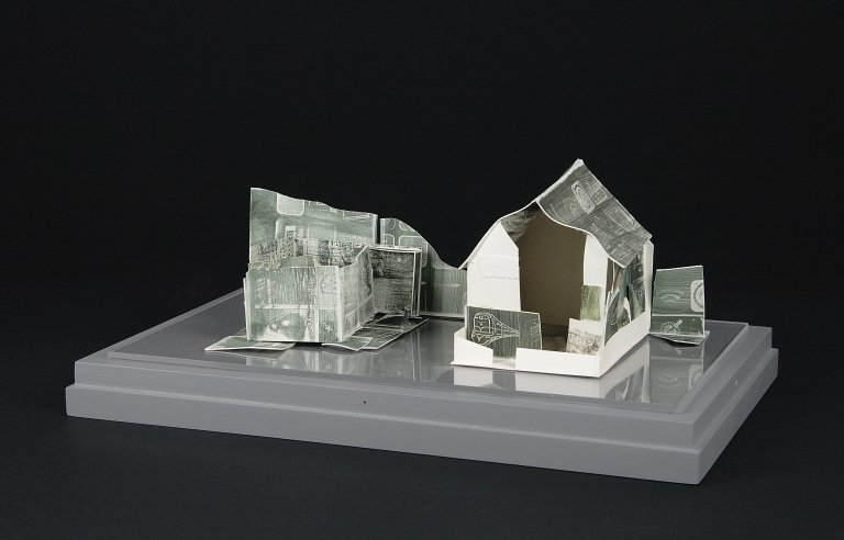Opera composta da due abitazioni in porcellana decorata, su base in legno e plexiglass e racchiuse da teca in plexiglass.
