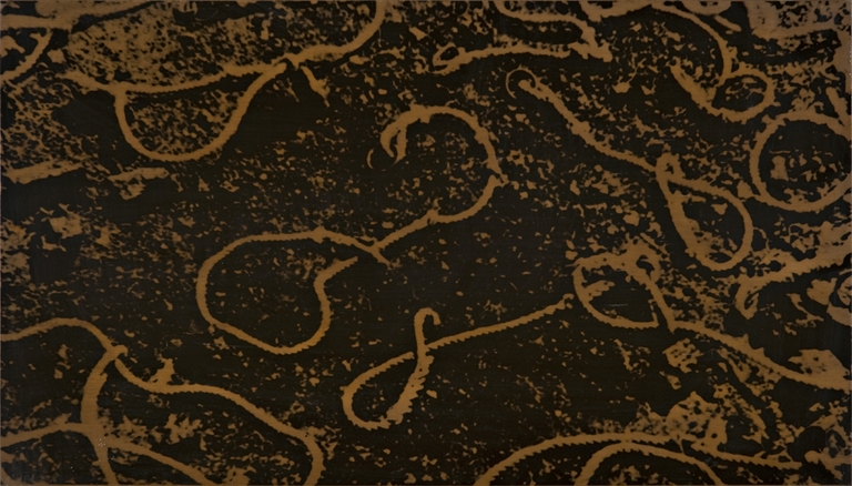 il pannello è costituito da una gigantografia che mostra, graficamente rielaborata, l'immagine di tanti cappi o scorsoi adagiati per terra.