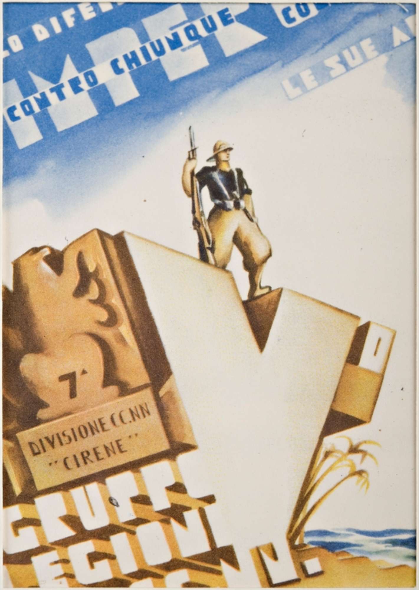 Fa parte di una collezione di 48 cartoline illustrate di diversi editori e disegnatori riguardanti i reparti nazionali e coloniali. Durante il fascismo la cartolina venne sfruttata come strumento di penetrazione capillare, infatti con la guerra di Etiopia il regime collaudò il funzionamento di un sistema di propaganda di massa integrale. Questa propaganda era sotto il controllo diretto del Ministero per la Cultura Popolare che bandì tutte le forme di estrosità e di sovvertimenti futuristi che pure avevano contribuito a scrivere pagine importanti in quest'arte. Gli artisti impegnati in queste opere furono i vari Boccasile, Tafuri, Pisani che coniugarono lo stile realistico con una retorica piena di elementi simbolici ed allegorici. Vero e proprio manifesto da tasca, la cartolina diventò strumento di persuasione parte integrante di una campagna propagandistica, insieme all'affissione di manifesti, alla pubblicazione di articoli di stampa, alla propagazione di servizi radiofonici e cinematografici.