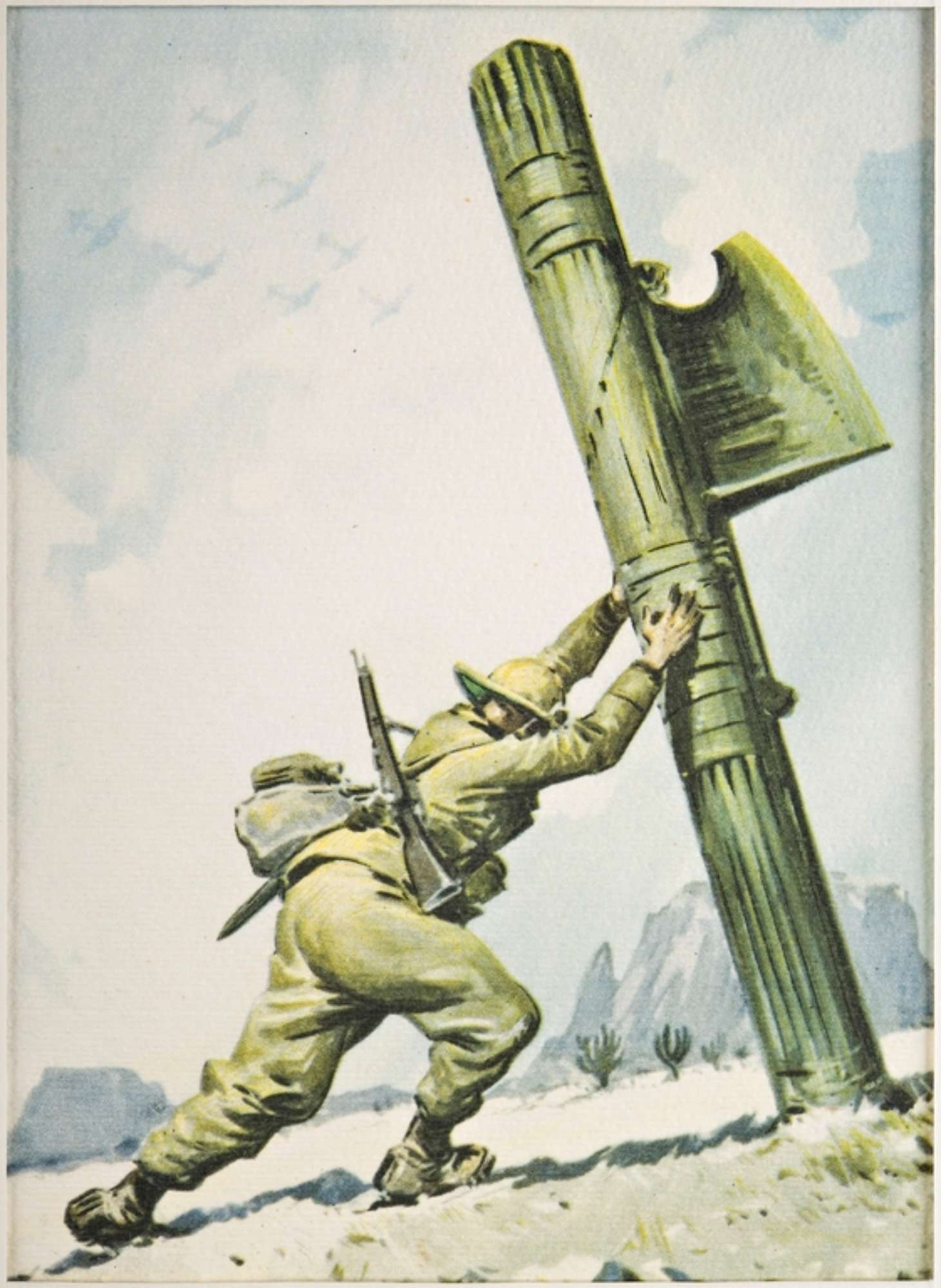Fa parte di una collezione di 48 cartoline illustrate di diversi editori e disegnatori riguardanti i reparti nazionali e coloniali. Durante il fascismo la cartolina venne sfruttata come strumento di penetrazione capillare, infatti con la guerra di Etiopia il regime collaudò il funzionamento di un sistema di propaganda di massa integrale. Questa propaganda era sotto il controllo diretto del Ministero per la Cultura Popolare che bandì tutte le forme di estrosità e di sovvertimenti futuristi che pure avevano contribuito a scrivere pagine importanti in quest'arte. Gli artisti impegnati in queste opere furono i vari Boccasile, Tafuri, Pisani che coniugarono lo stile realistico con una retorica piena di elementi simbolici ed allegorici. Vero e proprio manifesto da tasca, la cartolina diventò strumento di persuasione parte integrante di una campagna propagandistica, insieme all'affissione di manifesti, alla pubblicazione di articoli di stampa, alla propagazione di servizi radiofonici e cinematografici.