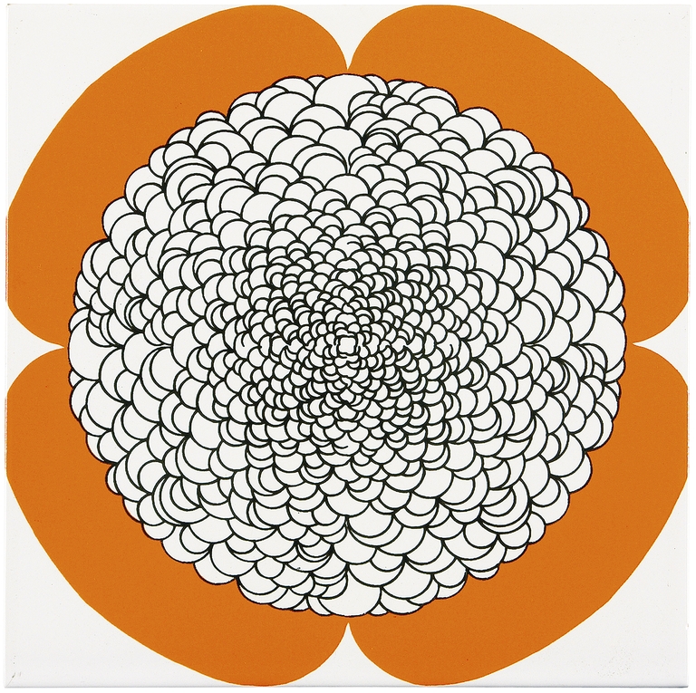 Piastrella coordinata da rivestimento in terraglia semi-forte, con decorazione in decalcomania rosso Selenio.