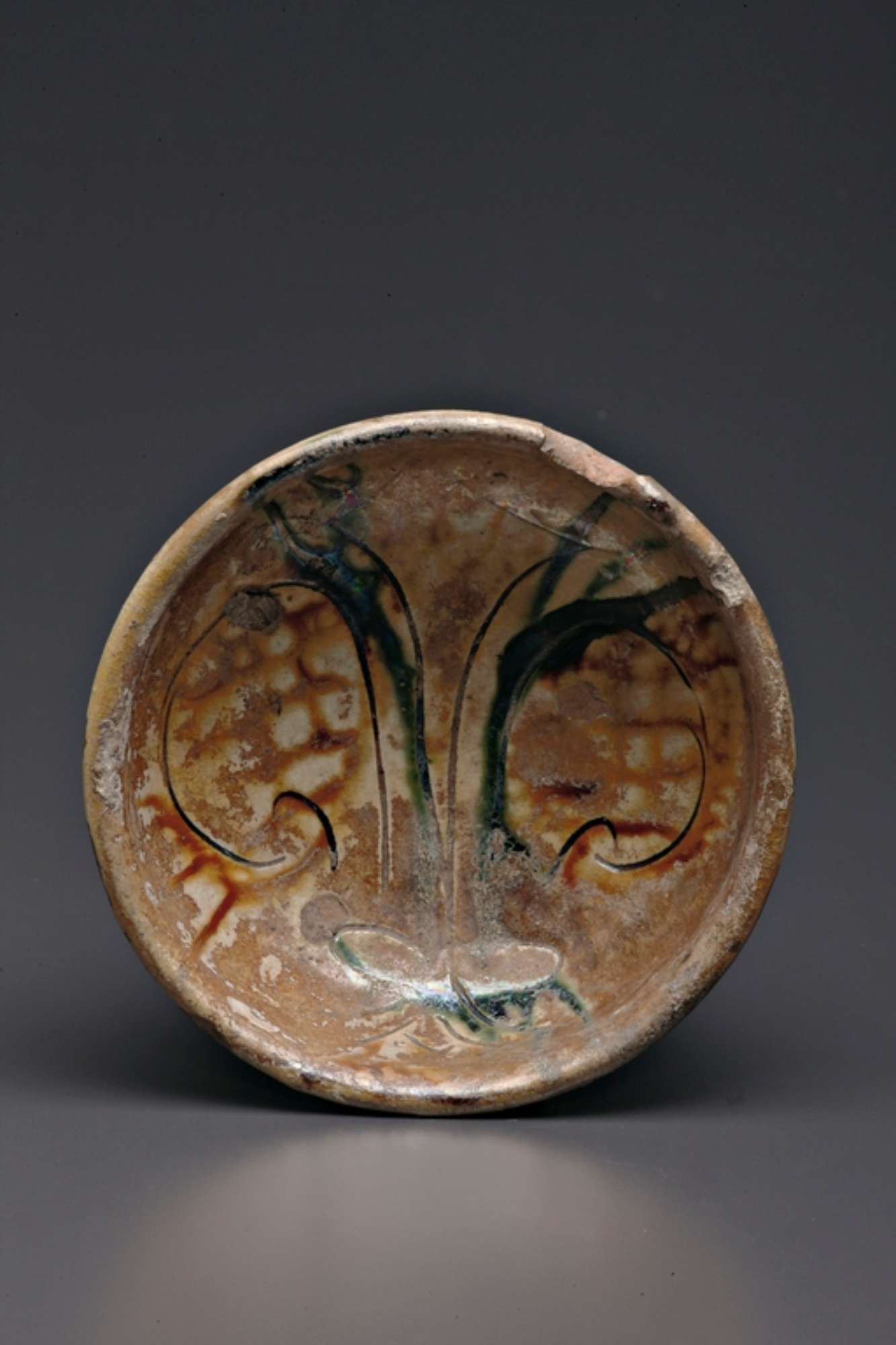 La terracotta è graffita e dipinta in verde-ramina e giallo-ferraccia.
