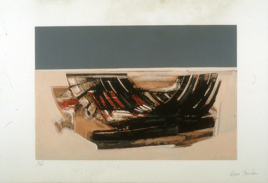 Assieme al tema delle periferie urbane, quello dei relitti di barche e dei cantieri navali è uno dei soggetti ricorrenti della pittura del pittore d’origine cesenate, entrambi sviluppati fin dall’immediato dopoguerra.