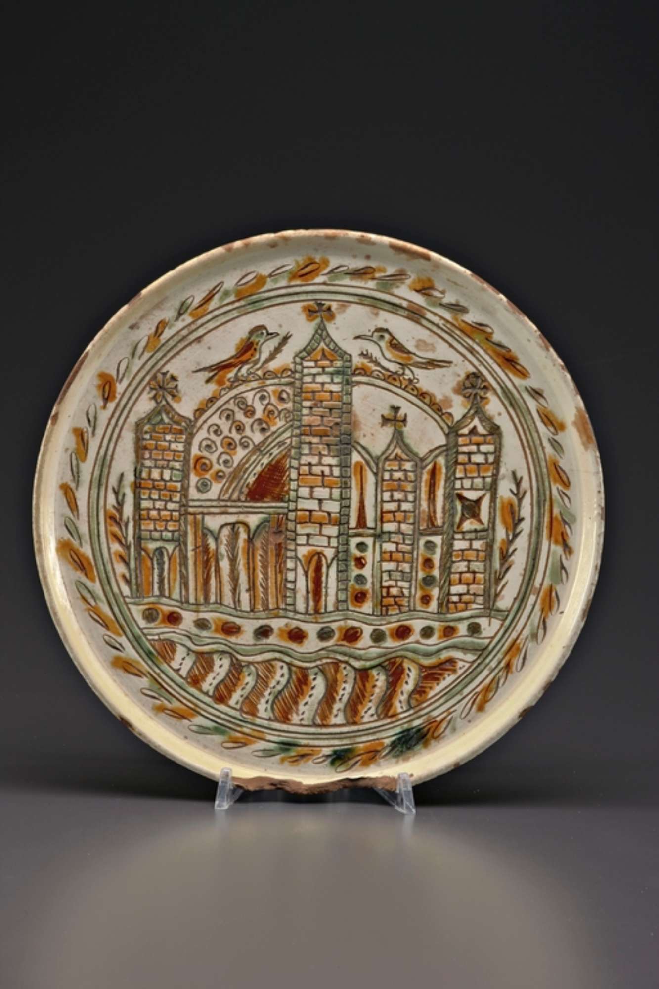 La decorazione graffita è costituita al centro dalla rappresentazione stilizzata di una città.