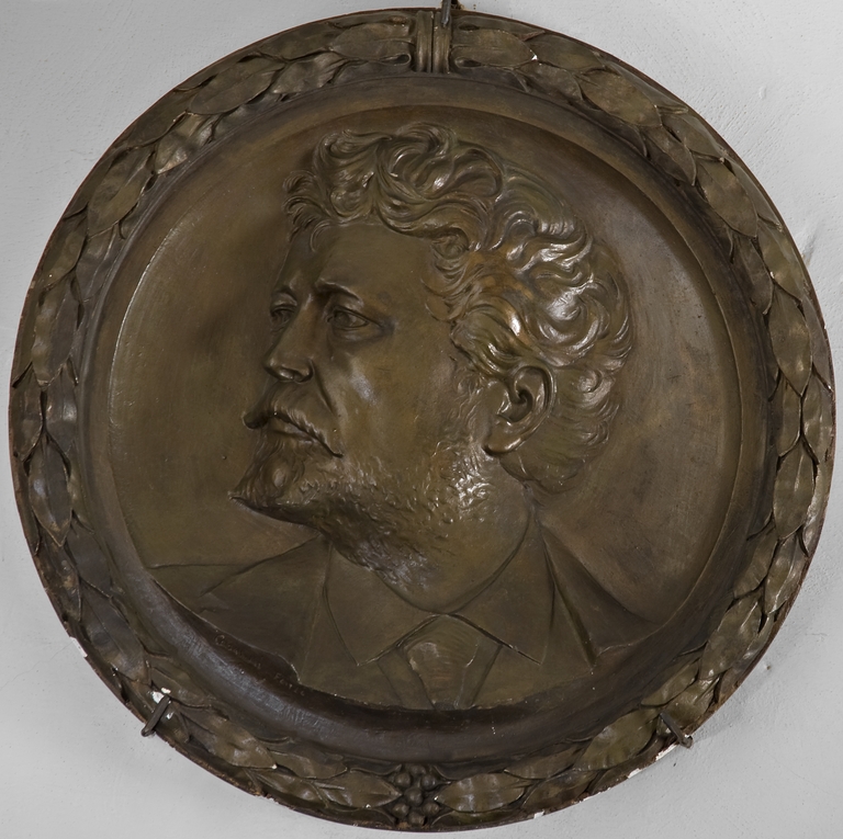 Il medaglione è un bassorilievo in gesso monocromo dipinto con vernice color bronzo, che ritrae il volto di Angelo Masini, orientato di tre quarti. Riproduce posa e fattezze del fotoritratto Esplugas, inventariato con il numero 132 della stessa sala, e riprodotto anche nei reperti 127, 239, 188.