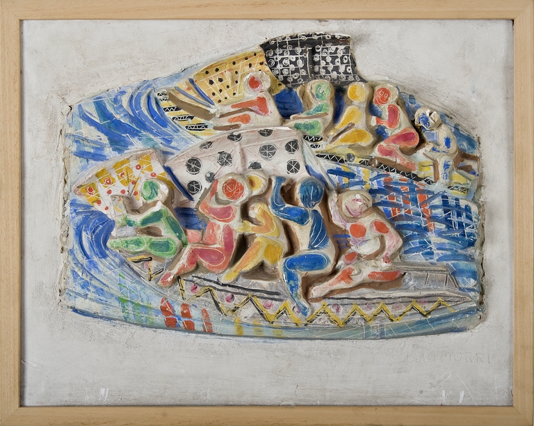 L'opera è un bozzetto in gesso dipinto, scolpito per una scultura di cui non è nota la realizzazione, raffigurante due imbarcazioni affiancate, ciascuna con un equipaggio composto di cinque persone, intente a disputare una regata. Le figure, molto stilizzate ma plasticamente rilevate, sono dipinte con colori molto accesi: verde, rosso, giallo, blu, etc.. Sopratutto per quanto riguarda i personaggi della prima imbarcazione, la varietà delle pose, in taluni casi quasi caricaturali, restituiscono l'effetto dello sforzo e del movimento. Effetto di movimento espresso anche dalle vele variopinte gonfiate dal vento e dalla raffigurazione delle onde tracciate con sintetiche e veloci pennellate curvilinee che accompagnano e insieme contrastano il moto delle due imbarcazioni.