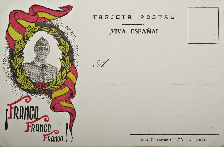 Cartolina di parte franchista durante la guerra civile spagnola (1936-1939).
