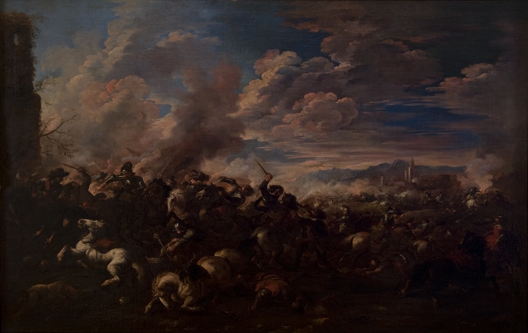 Francesco Monti entrò formalmente al servizio dei Farnese. Sono almeno quattro le Battaglie conservata alla Pinacoteca Stuard di sua mano, ancora in cornici originali in pendant. Vi sono poi altre due scene, l'una campestre, l'altra riconducibile a fatti di guerra attribuibili al Monti. Si tratta di opere databili tutte tra la fine del Seicento e i primi anni del XVIII secolo.