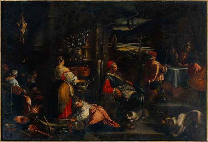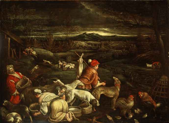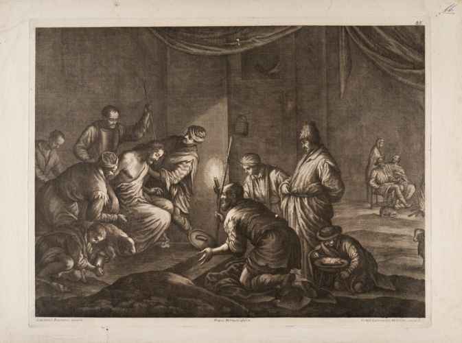 Nell’elenco fornito da mons. Natalini il dipinto risulta registrato come opera attribuita a Jacopo Bassano (Bassano, 1515 ca. – 1592) o a Francesco il Giovane (Bassano, 1549- 1592). A nostro parere, anche a causa di una generale trasformazione dei pigmenti il dipinto risulta incrudito nel contrasto delle ombre con le luci ed esasperato nella caratterizzazione espressionistica, quasi grottesca, dei manigoldi: ciò induce a pensare che ci si trovi in presenza di un prodotto stereotipo della bottega dapontiana, ormai bene addentro al XVII secolo." (G. Viroli)