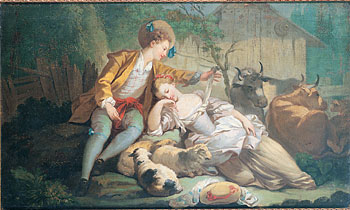 Provenienza: secondo una nota dell'archivio del Museo (blocco marrone) il sovraporta ornava la reggia di Colorno di don Ferdinando, e da questi fu lasciato in eredità al guardarobiere dei Borbone Giuseppe Chepy.