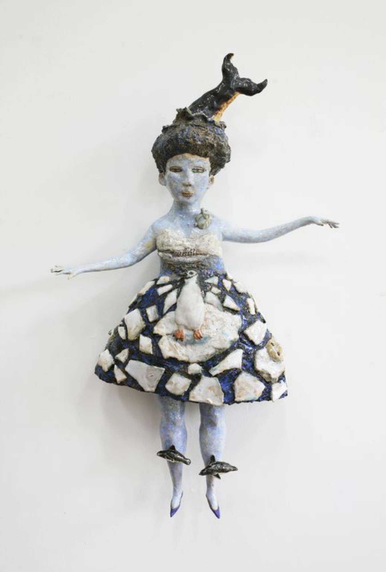 Scultura femminile realizzata in grès con smalti. La figura femminile ha braccia aperte, indossa un abito dalla larga gonna e porta i capelli corti, in cima alla capigliatura è posta la coda con pinna caudale di una balena. Sul ventre è posato un pinguino, il muscolo del cuore è inserito sopra al petto, mentre due piccoli cetacei sono posti sulle gambe della figura. Sul retro della scultura sono inserite scritte incise.
