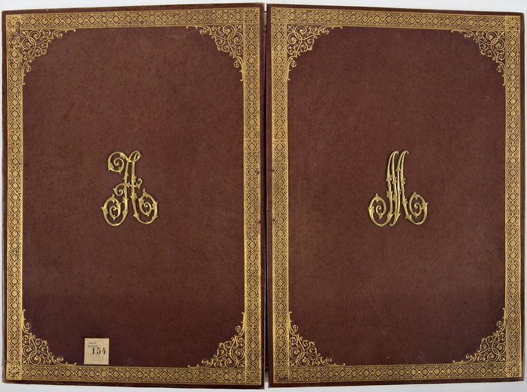 La cartella di cartone rigido, rivestita in pelle rossa, presenta un'apertura a finestra con due lembi rettangolari, ciascuno dei quali riquadrato da bordature decorative impresse in oro con al centro le iniziali dell'artista, A. sul lembo sinistro e M. su quello destro. All'interno è contenuta una pergamena che conferisce al Masini la carica di socio onorario da parte della Società Italiana di Beneficenza di San Pietroburgo, data 1/13 gennaio 1892. L'attestato consta di dieci righe di testo corsivo, inserite all'interno di un riquadro rettangolare bordato con il tricolore italiano e una corona d'alloro. L'intestazione della società che conferisce la nomina è compresa tra due stemmi, a sinistra lo scudo crociato sormontato dalla corona sabauda del Regno d'Italia, a destra una figura a cavallo su di una rupe. I caratteri "Società Italiana di Beneficienza", "Angelo Masini" e "Sua Maestà", sono in grassetto e presentano decorazioni particolarmente elaborate rispetto al resto del testo. Nell'angolo in basso a sinistra del diploma è presente una firma illeggibile, forse del realizzatore grafico. La pergamena è fissata al fondo della cartella da quattro nastrini angolari in seta. Anche i lembi della cartella sono sul retro rivestiti in seta.