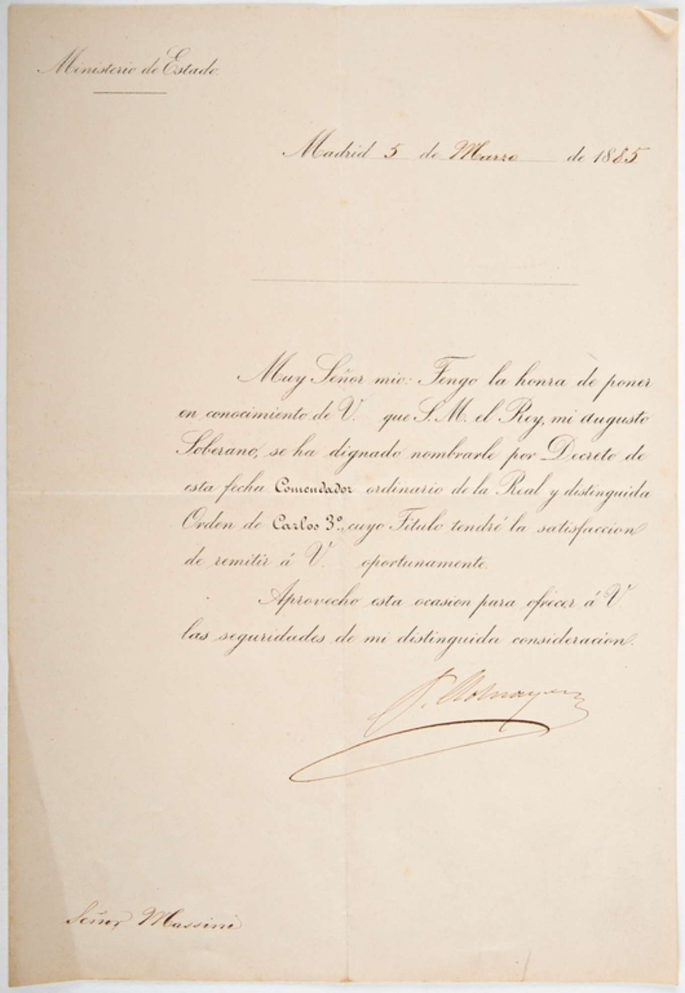 La lettera è scritta a penna con inchiostro nero, a caratteri molto inclinati. Il corpo del testo consta di otto righe, escluse le intestazioni del mittente e la data, posizionati in alto, il destinatario e la firma autografa, posizionati in basso. La firma non è decifrabile.