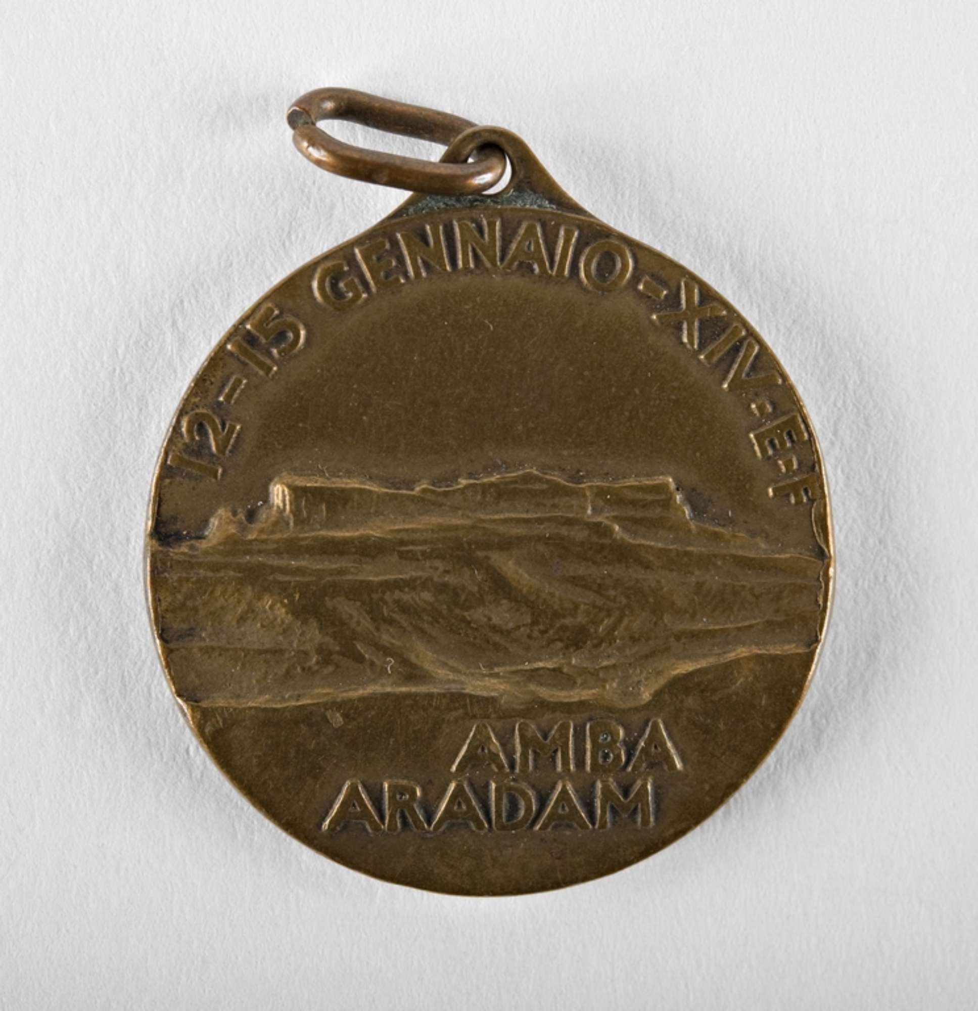 Medaglia in bronzo che reca al diritto la raffigurazione dell'altopiano etiopico dell'Amba Aradam; in esergo e nel giro appaiono le epigrafi sul luogo e la data dell'azione oggetto del conferimento. Sul rovescio al centro è rappresentato un lupo, colto di profilo mentre avanza verso sinistra; nel giro l'iscrizione riguardante la divisone e sotto il lupo a destra la firma del medaglista.
