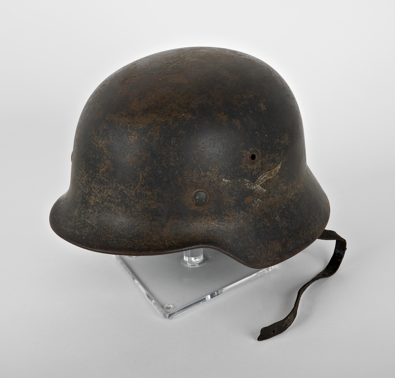 In dotazione ai Reparti della Luftwaffe e, in particolare, alla Divisone Hermann Goering (Fallschirmjager-Panzer-Division 1° "Hermann Göring"), che, pur appartenendo formalmente alla Luftwaffe, costituiva una Divisione autonoma di Granatieri corazzati, dotata di equipaggiamenti ed armamenti analoghi a quelli delle Waffen SS (le unità combattenti delle SS) e, quindi, tecnologicamente avanzati. Quest’elmetto si distingueva per il colore blu scuro, ormai deteriorato dal tempo, tipico dei reparti della Luftwaffe, nonché per l’emblema con aquila, ad ali spiegate e svastica, elementi distintivi dell’Aviazione militare tedesca; questo esemplare è stato recuperato nella zona di Montefiorino.