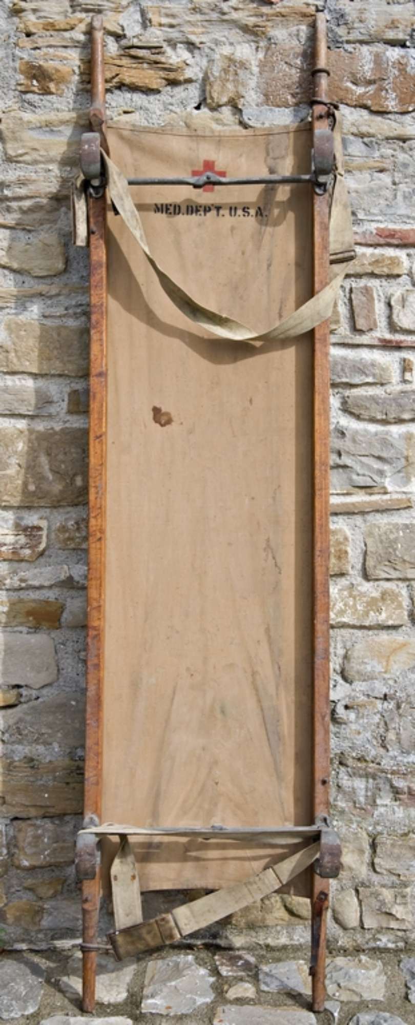 La barella si compone di due aste in legno (manici) e di un telo sul quale adagiare il ferito. Alle due estremità sono presenti due cinghie, o bretelle, di tessuto che servivano per assicurare il corpo alla barella. La barella poteva essere chiusa quando inutilizzata grazie alle due aste metalliche pieghevoli. Sull'estremità superiore del telo è riportata la marcatura del Dipartimento Medico statunitense
