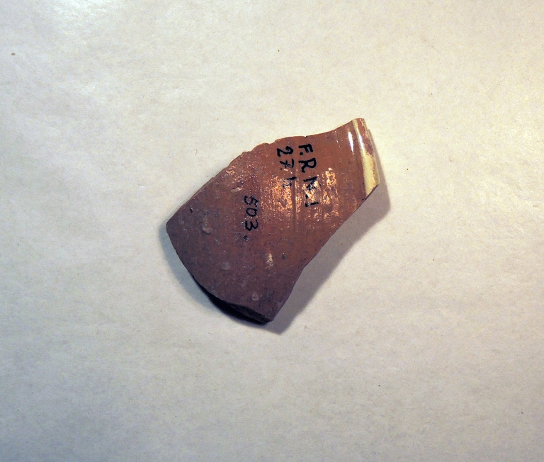 Frammento di ciotola con orlo estroflesso e cavetto emisferico. Tracce di motivo dipinto in giallo ferraccia.