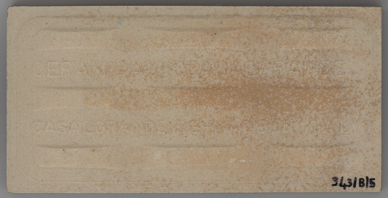 b: della serie "venato" ad imitazione del marmo. Sul retro di una impresso “ceramica Casalgrande | E 2 | Casalgrande R.E. – Made in Italy”. Sul retro di altra “ceramica Casalgrande | E 3 | Casalgrande R.E. – Made in Italy”. Sul retro di altra “ceramica Casalgrande (due pallini) | H 1 | Casalgrande R.E. Made in Italy”. Sul retro di altre due “ceramica Casalgrande (due pallini) | H 4 | Casalgrande R.E. Made in Italy”.
