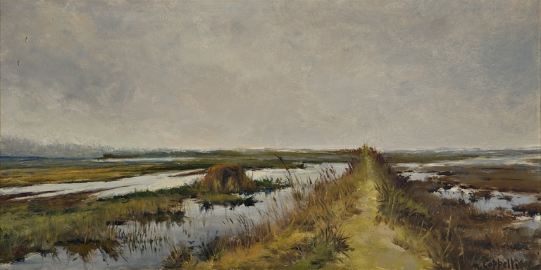 Il dipinto fa parte di un ciclo di paesaggi intitolato Marina Romea, ove sono raffigurate ampie vedute prospettiche delle valli.