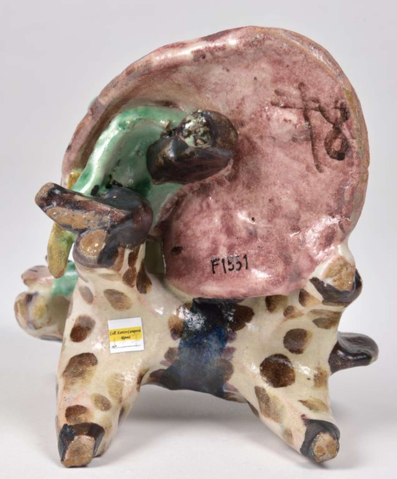 Plastica raffigurante un guerriero in piedi, con spada legata in vita, elmo e lungo mantello, intento a scrutare l'orizzonte portando una mano sulla fronte, mentre con l'altra tiene per le briglie un cavallo dal manto marezzato. Dipinta in policromia. L'interno del manto è firmato con la sigla dell'autore.