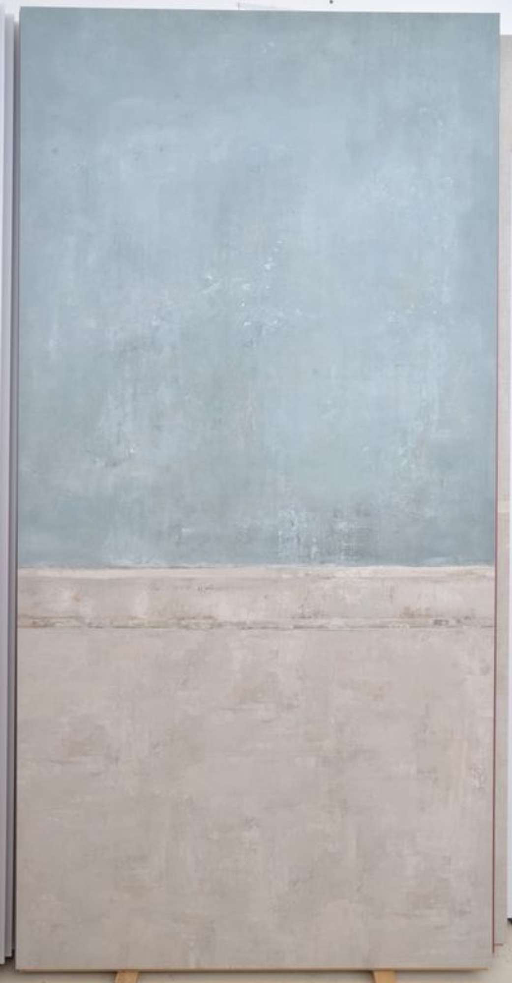 b: "Villa" 1 piastrella con superficie suddivisa in due parti, la più ampia nei toni del celeste, mentre l'altra sul grigio.