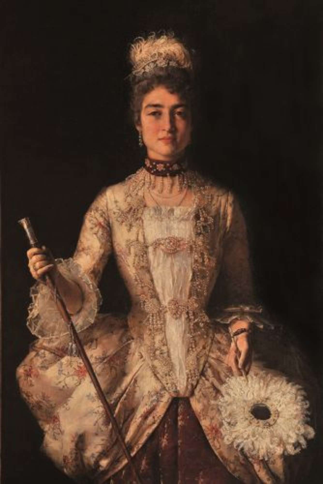 Sin dagli anni immediatamente successivi alla formazione presso l'Accademia di Belle Arti di Ravenna, Saporetti rivela le sue doti di ritrattista, realizzando diversi ritratti a conoscenti, amici e agiati committenti locali. L'artista risulta essere particolarmente apprezzato dalla nobiltà locale e dall'alta borghesia per la sua abilità nel restituire in pittura la ricchezza e la qualità materica dell'abbigliamento di una classe sociale sempre più chiusa e attaccata alle proprie origini, e per questo desiderosa di poter tramandare la nobiltà della propria immagine. Sebbene la "Ragazza in abito settecentesco" sia da considerarsi più che un ritratto vero e proprio una prova di carattere eseguita per mezzo di una modella (forse la stessa moglie dell'artista) appositamente abbigliata, il dipinto è uno die più rappresentativi delle sue qualità di apprezzato ritrattista e della prima attività dell'artista.