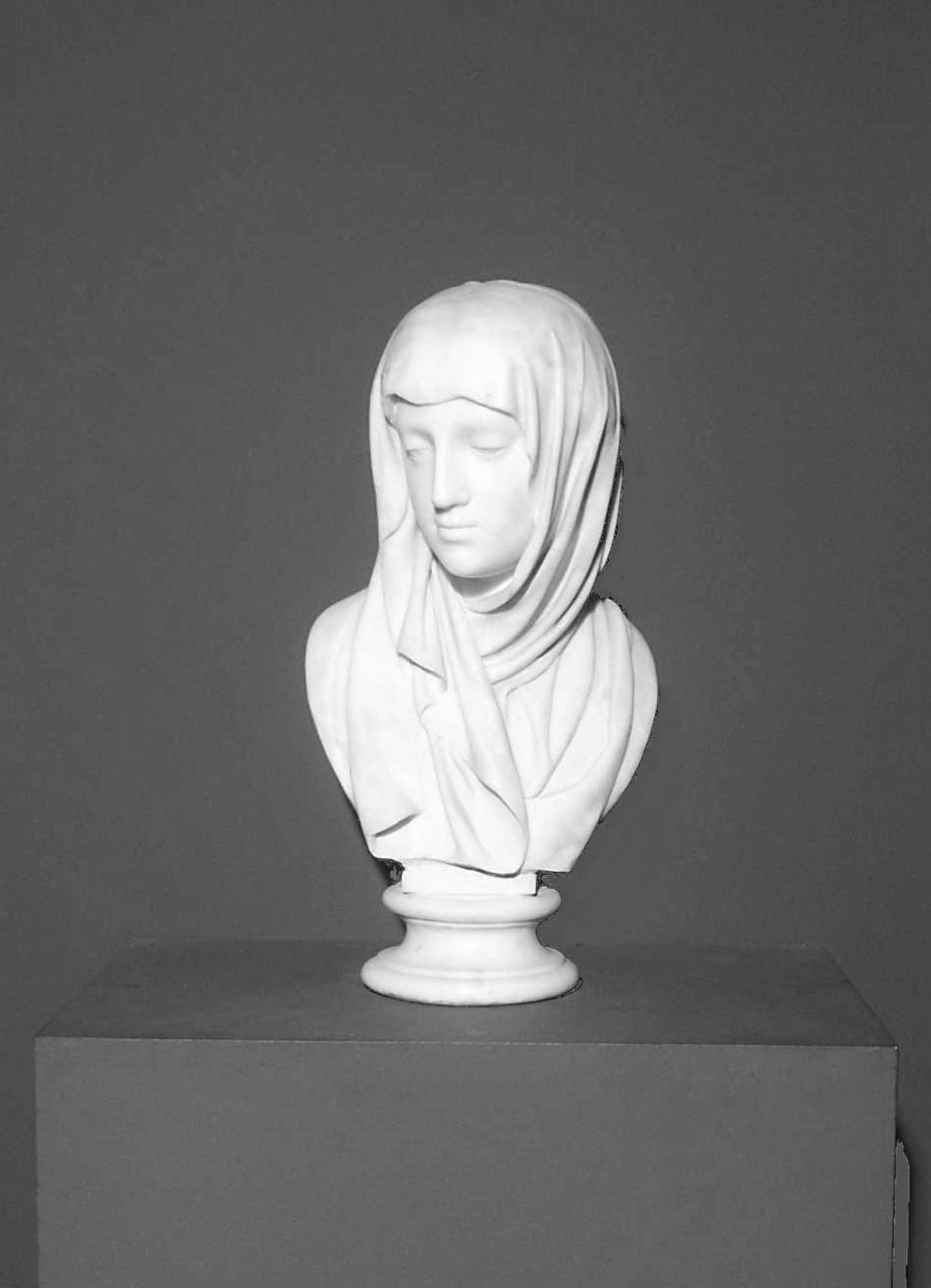 Il busto raffigura una giovane donna col capo coperto dal velo e lo sguardo rivolto verso il basso.